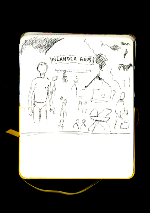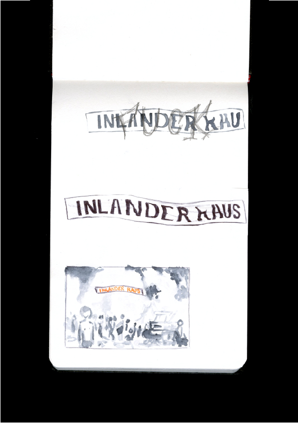 « Inländer Raus », « Natifs, dehors » À travers cette photographie, Santiago Sierra s'intéresse au contexte géopolitique de la colonisation de Majorque qui est habité par une communauté germanophone et de l'exploitation de la population locale. L'installation de cette banderole a un aspect provocateur, car il s'agit de faire réagir sur le tourisme de masse et de la vie locale. Le fait que l'artiste utilise un titre écrit en allemand représente une importante appropriation des terres et des infrastructures touristiques par cette communauté. De plus, la banderole a été réinstallée et retirée plusieurs fois suite à plusieurs plaintes.