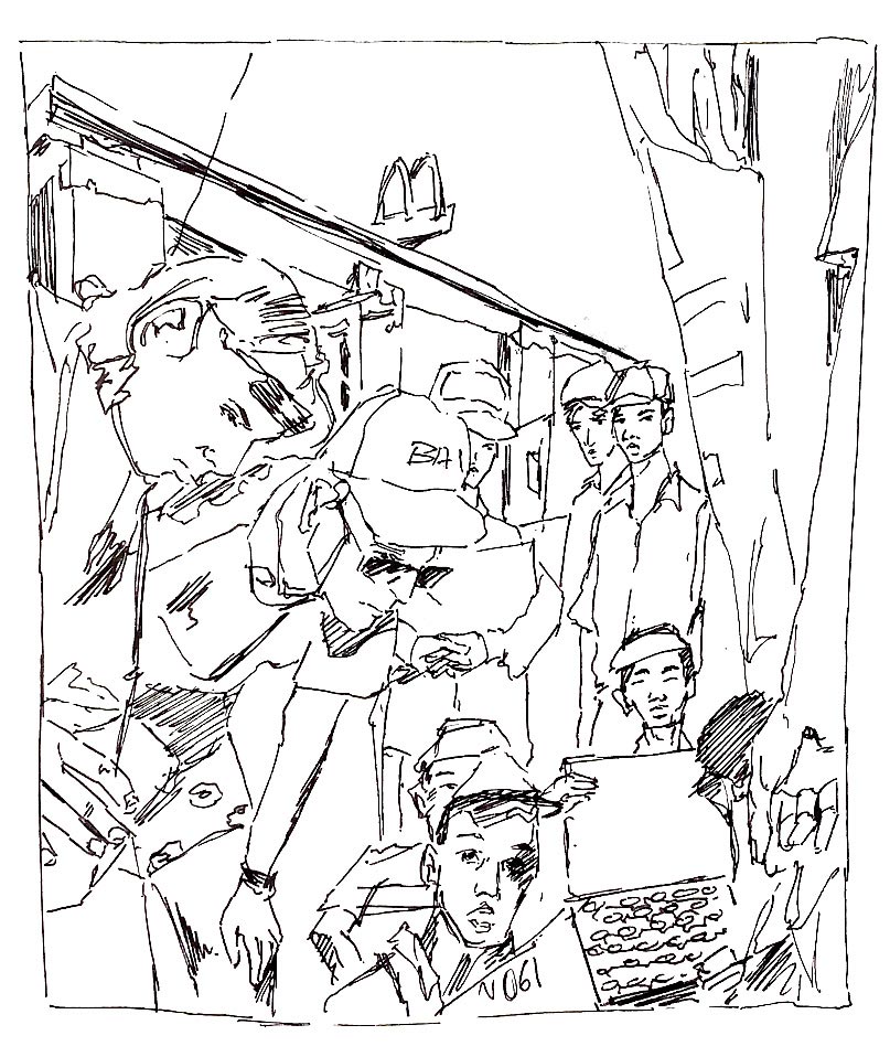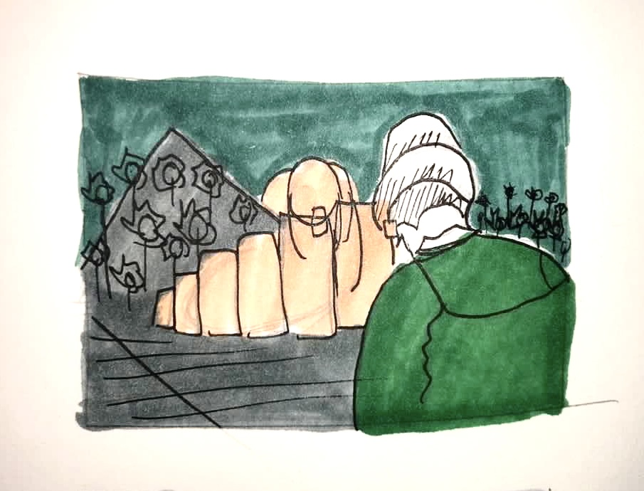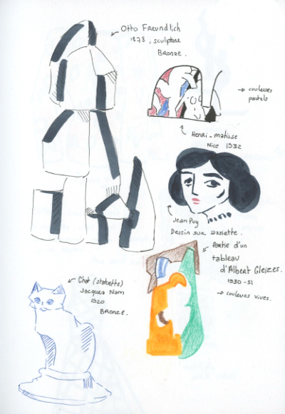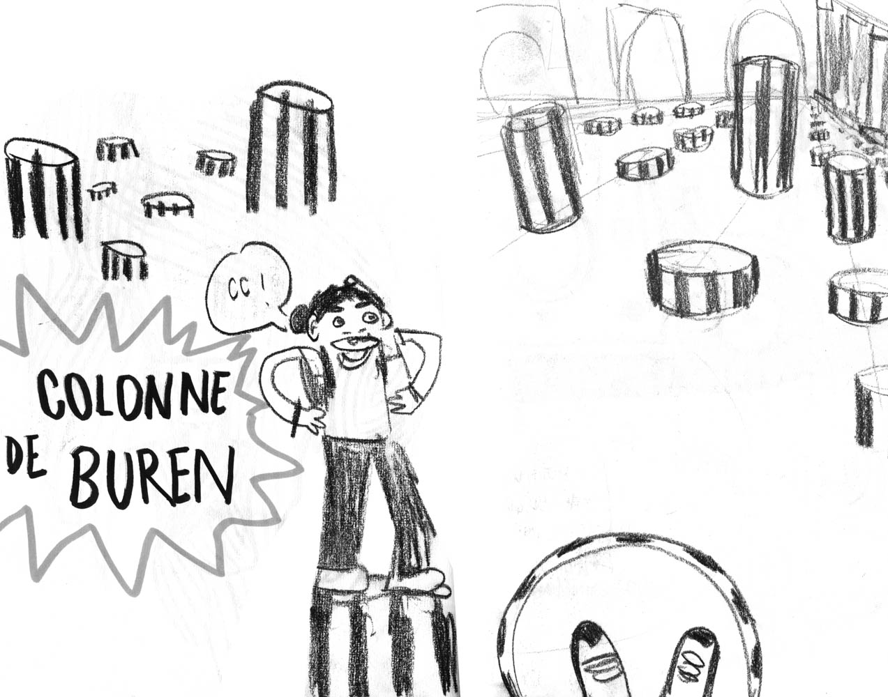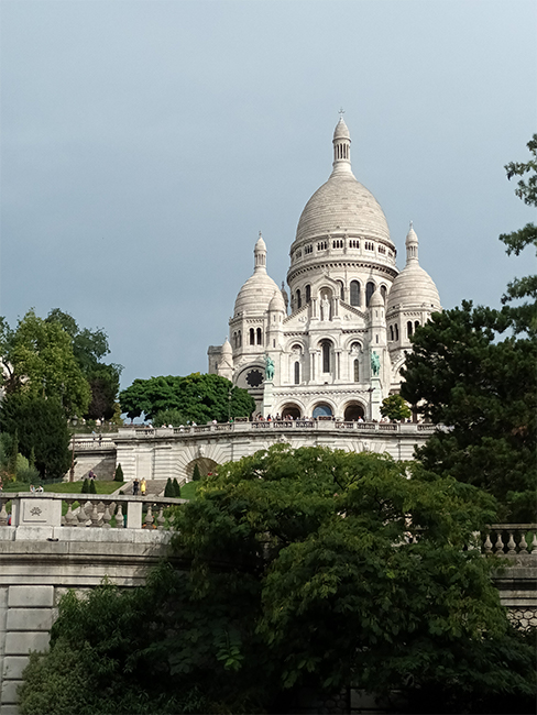 Au sommet de ParisConsidéré comme l’un des lieux les plus emblématiques de Paris, le Sacré-Cœur surplombe le XVIIIe arrondissement. Son architecture imposante se dresse face à nous lors de notre ascension jusqu’au pied de la basilique. Cet édifice religieux propose de nombreuses messes chaque jour attirant des touristes du monde entier. Après un effort physique conséquent face aux marches menant à la basilique, un étonnant panorama apparait. Ce dernier offre une liberté visuelle époustouflante, un lieu où l’on se rend compte de l’immensité de Paris, de ses alentours et de Montmartre. La complexité de l’architecture néo-classique de ce monument apporte une atmosphère riche en histoire. Bien que l’abondance de touristes nous ai dissuadé d’entrer dans cet édifice, on imagine facilement depuis l’extérieur l’aspect à la fois pesant des grandes architectures et la quiétude résonante au sein du monument. Disposé sur les hauteurs de Montmartre, ce lieu semble régner sur Paris faisant écho à l’intérêt de sa construction lors de la Troisième République. Au-delà de la découverte de Paris grâce à ce point de vue, ce lieu a été source d’engouement et de créativité afin de garnir nos carnets de croquis.