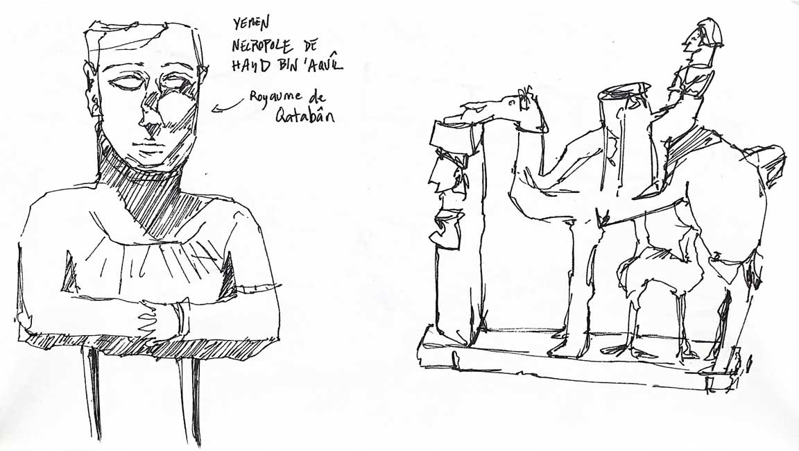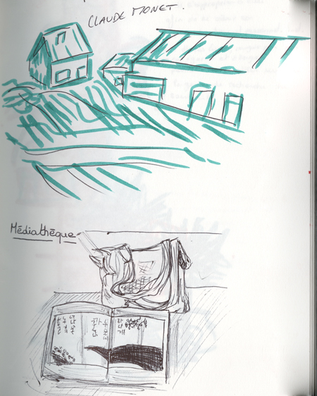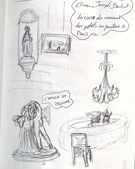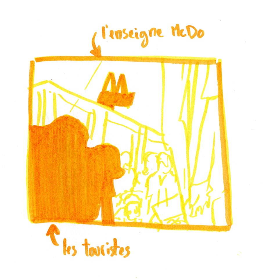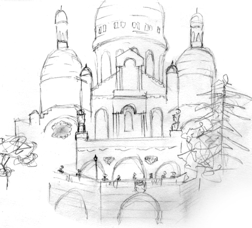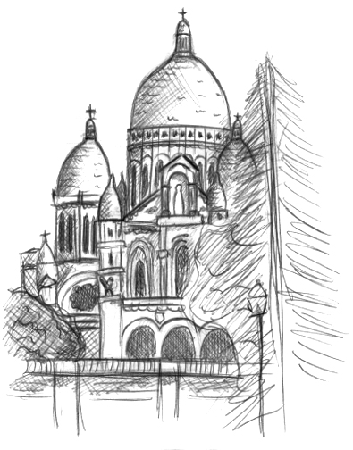 At the summit of ParisConsidered like a one of the most emblematic place of Paris, the Sacré-Cœur overlooks the XVIIIth district. His impressive architecture stands face to us during our ascent until the bottom of the basilica. This religious edifice offers a lot of masses for all of tourists of the world everyday. After a huge physical exertion against the steps leading to the basilica, a surprising panorama appears. This last offers a breathtaking visual liberty, it’s a place where we realize the Paris immensity, of his surroundings and Montmartre. The complexity of architecture neo-cassical of his monument give a rich history atmosphere. Although the abundance of tourists disuade us to enter of this edifice, we easly imagine from the outside the aspect both weighing of huge architectures and the resonant tranquility within of the monument. Disposed on the heights of Montmartre, this place seems rules on Paris, échoing the interest of his construction during the Thirst Republic. Beyond the discovery of Paris thanks to this point of view, this place has been a source of enthusiasm and creativity to fill our sketchbooks.