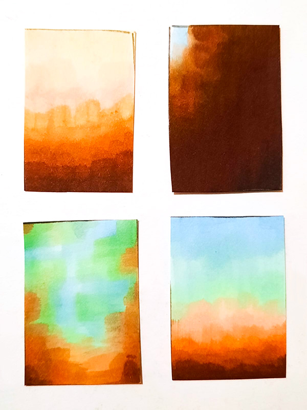A travel story through a variety of shades...Jean Christophe Norman wished to illustrate with this collection of paintings the skies he observed during his travels, strolls in the heart of the cities he visited. He chose to use the format of the pocket book to make reference to the mobility of travel. This format also allowed him to send his paintings by post, as if they were postcards taken from his travel journal. These paintings recall his memories, each representing the memory of a place, they capture the essence of a journey. It is a composition of 189 paintings, a multiplicity similar to the pages of a novel, a travelogue...