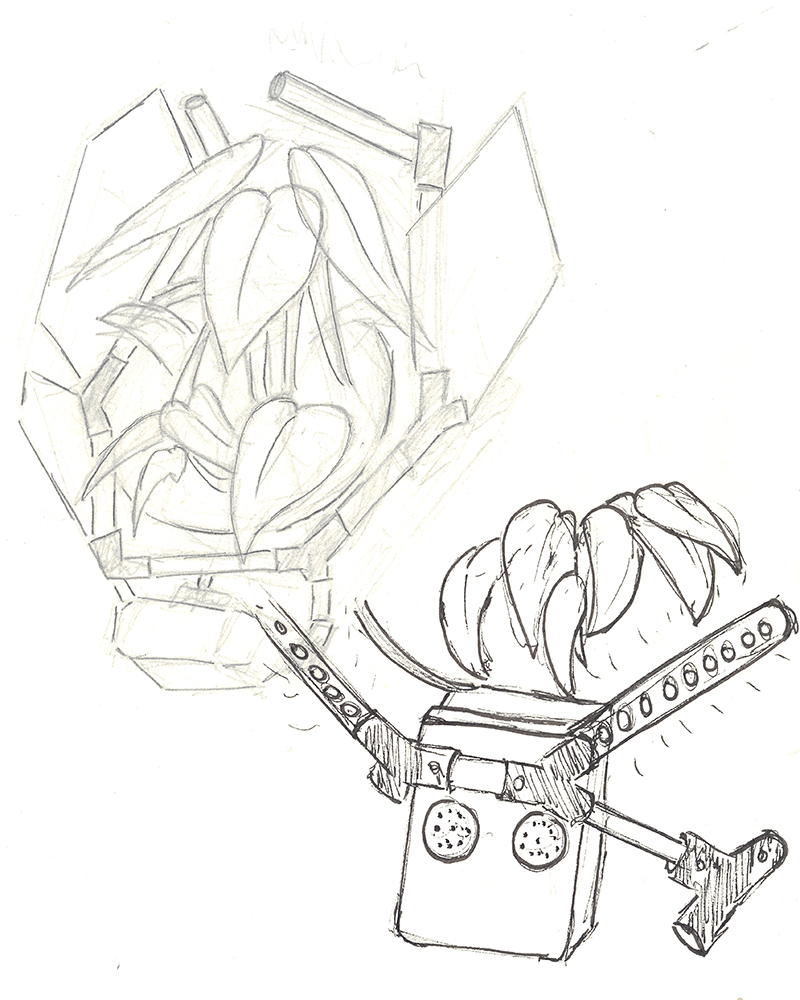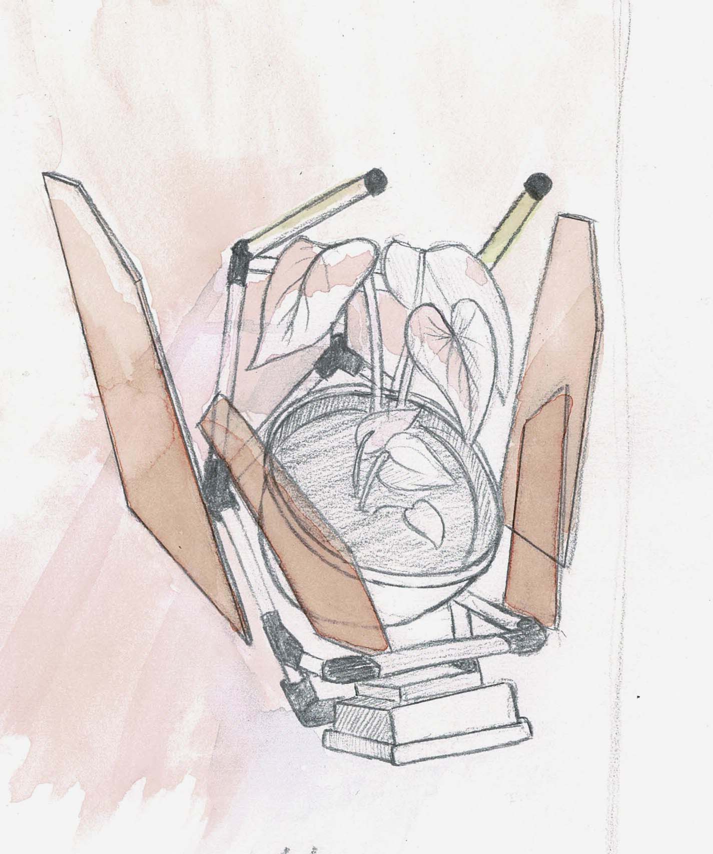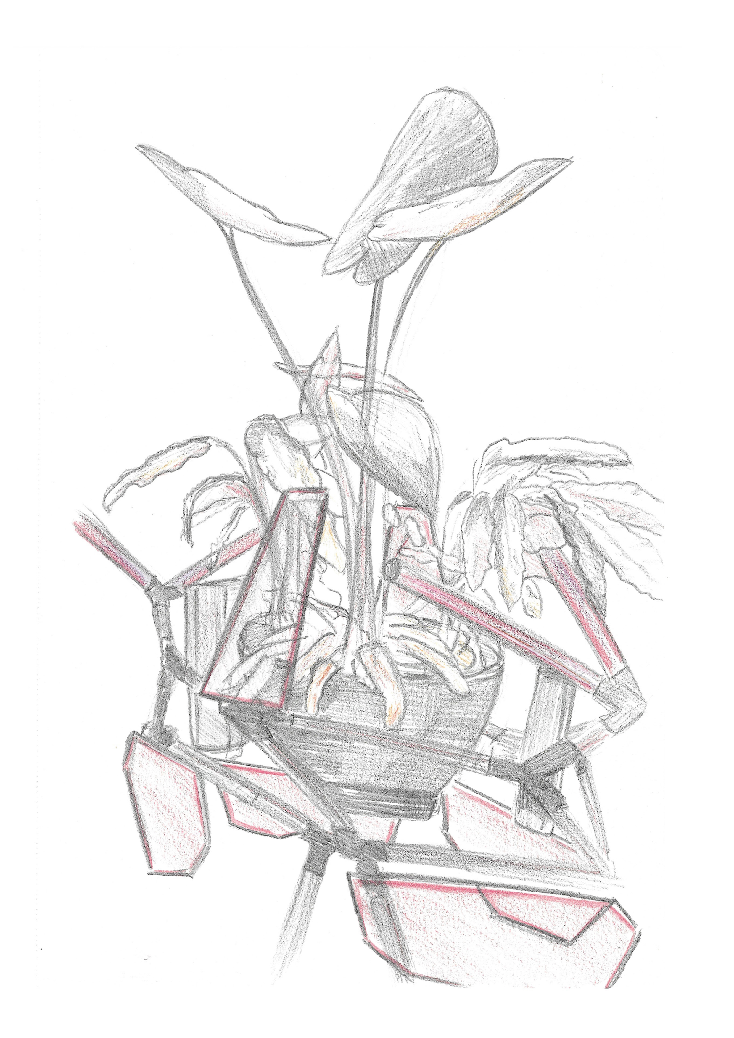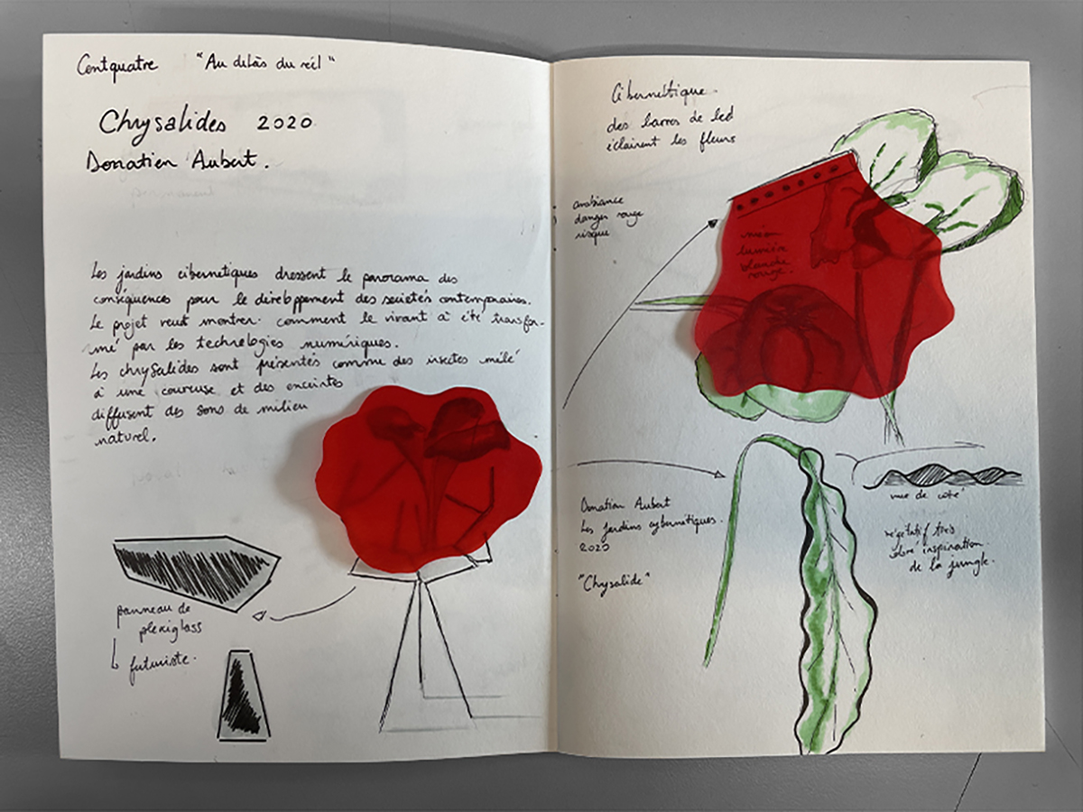 Ici, autour de ces Chrysalides le temps est figé, les plantes sont comme retenues artificiellement en vie. Les dispositifs interactifs Chrysalides se placent dans un ensemble d’installations nommé « Les jardins cibernétiques » questionnant le rapport que l’humain entretient avec la vie et les milieux dans lesquels elle s’insère. Ces oeuvres numériques présentent une flore futuriste remodelée par le développement technologiques des sociétés contemporaines. Ici autour de ces Chrysalides le temps est figé, les plantes sont comme retenues artificiellement en vie. Tout un écosystème est reproduit autour du végétal par le biais de supports technologiques. Tous ont pour objectif de reproduire un élément du milieu naturel de la pousse, du microcontrôleur Arduino aux enceintes en passant par des LEDS programmables. Fonctionnants tous ensemble ils tentent de recréer un environnement propice au développement de la plante exposée. Cette oeuvre quelques peu dystopique imagine un potentiel futur où la technologie aurait pris le dessus sur la nature et où les espaces naturels n’existent plus. Il serait alors de mise en faire survivre certaines espèces végétales à l’aide d’outils surdéveloppés.