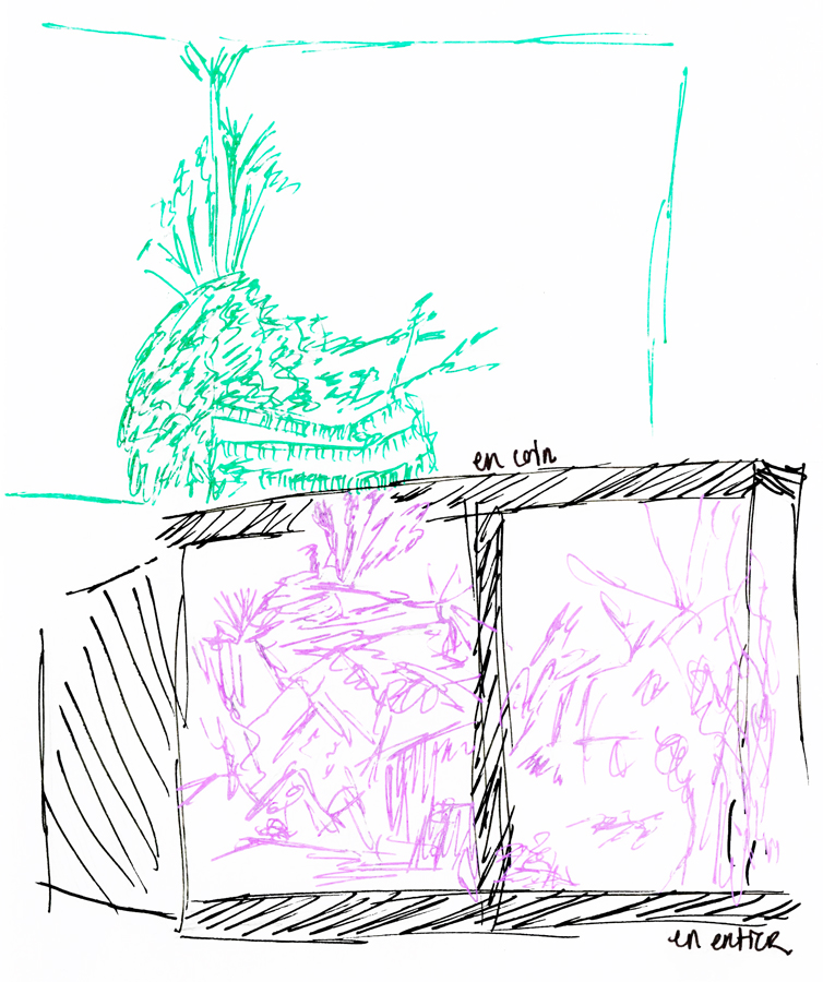 7/ Génération de lignes Ce modèle 3D permet alors de générer une vue choisie afin de bien percevoir l’espace qui est dessiné à partir de tracés.
