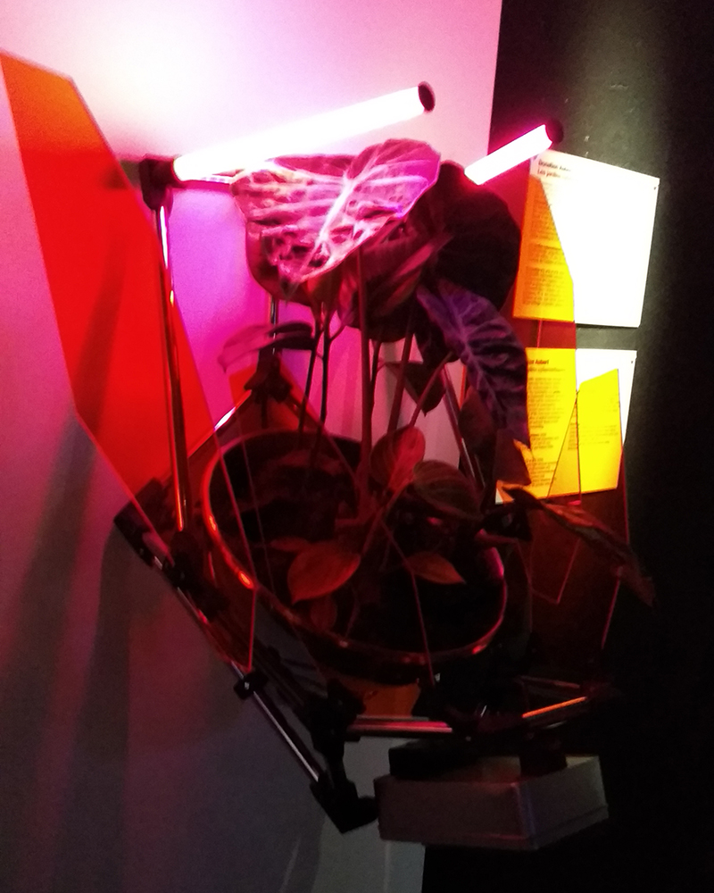 Art for the scienceIn the room named "Nature dénaturée", Eden is a work of art made in 2017 by Paul Duncombe, a Breton artist. The piece art is a reconstitution work of landscapes which suffer different poluttions whose radioactivity. The installation is 380 by 100 by 150 cm. He uses for that landscapes fragments, radioactive ores, plants, horticultural lights and automated control systems. 20 terrariums are in front of us. Paul Duncombe creates living and organic natures recreating life circumstences of plants development. The artist documents in this way the evolution of landscapes constantly mutating and the human impact on their lifetime. So, art and science combine to propose a reflection on the influence of our human acts on the nature.