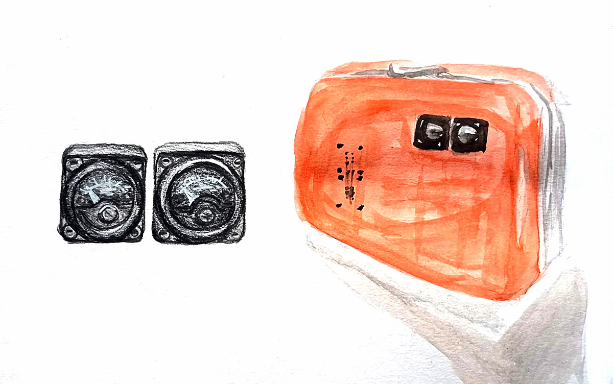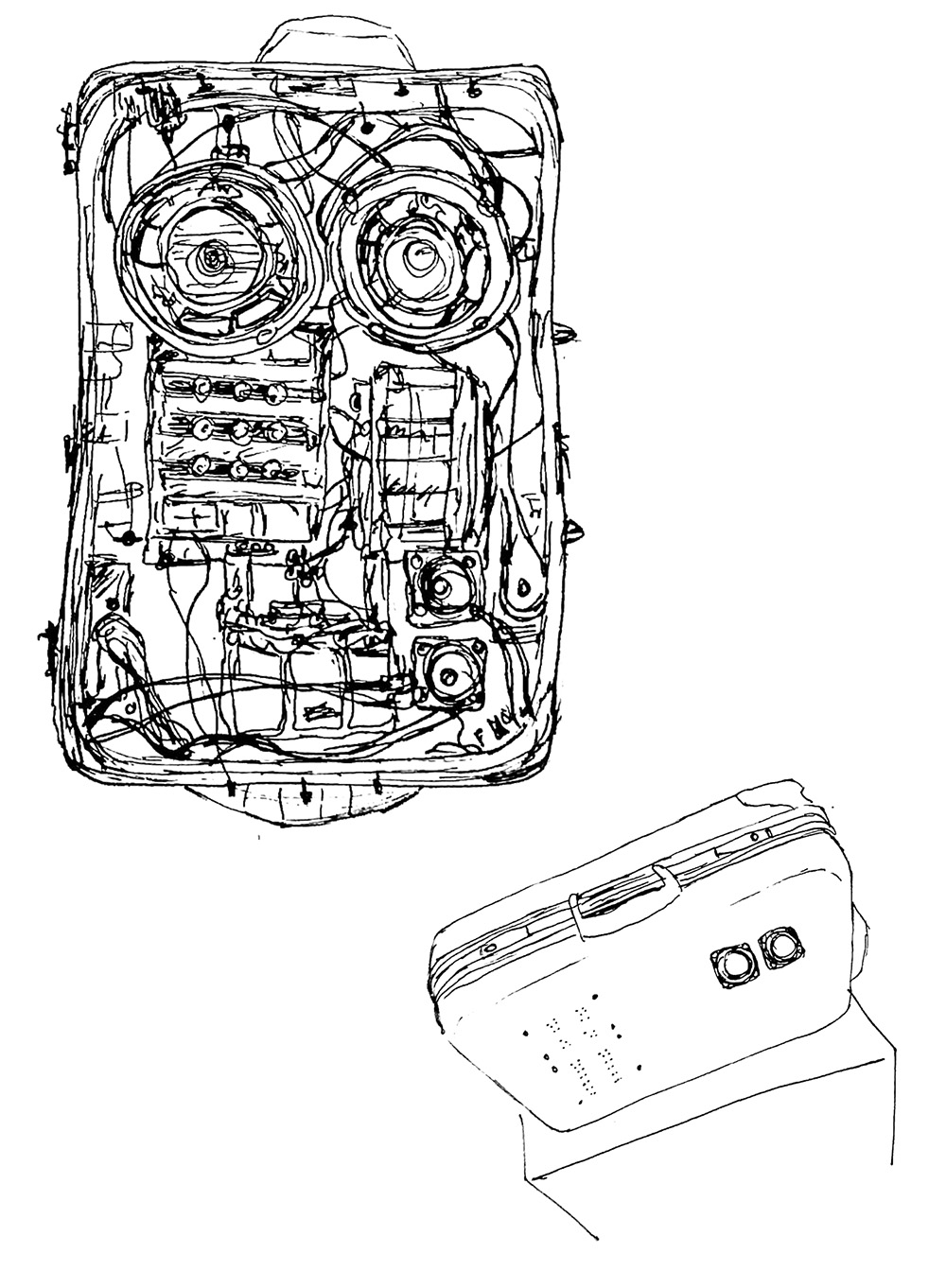 2005, Valise, système d'enregistrement et de diffusion audio et photographie réalisée par scanner 3D