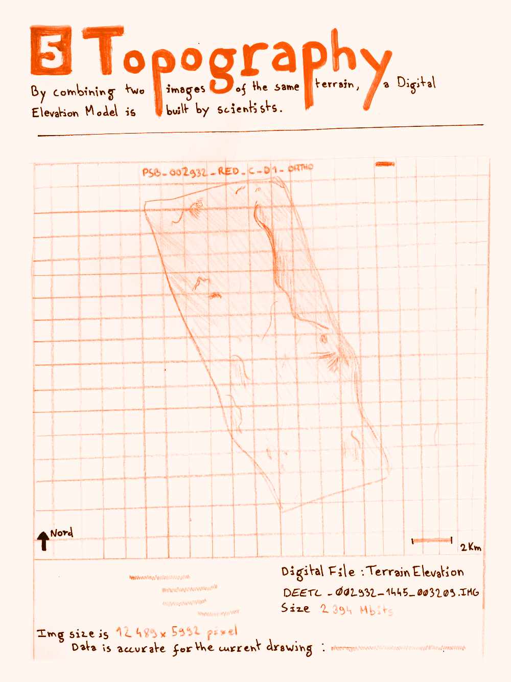 5/ Topographie Par la combinaison d’images, un model informatique de l’élévation du terrain est mis en place par des scientifiques à l’université d’Arizona, puis librement partagés en ligne.