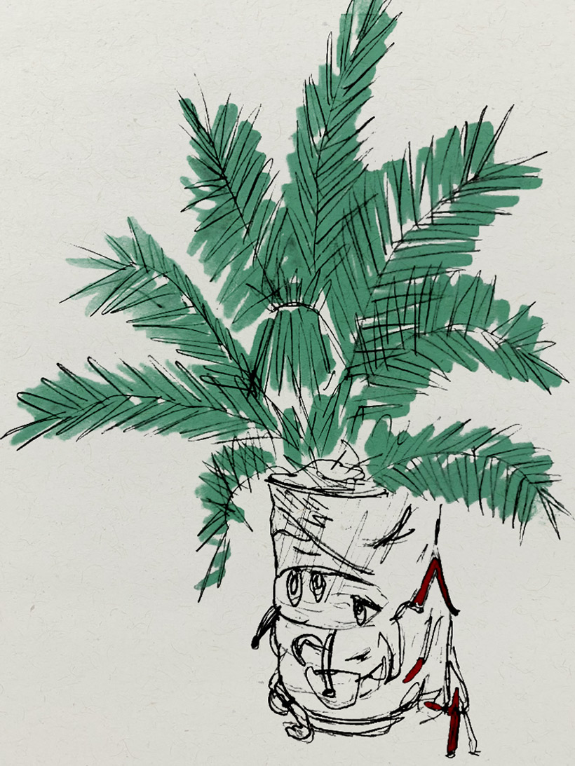 Travelling within our reachWhat if we took the question from the other direction? Is it possible to bring the journey to us? The artist, here, pushes us to release our reflection on the subject by putting the finger on the border between mobile and immobile. The bag suggests us a crossing, a walk. However, the palm tree confuses us and shows us that this bag, supposed to move, will not move anymore. The palm tree will never stop growing. It's like finally preserving the planet by bringing the palm tree home in a hiking bag. It gives us a palm tree landscape of a Caribbean vacation without the trip.