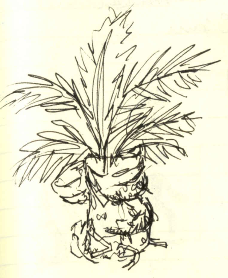 2007, Palmier Phoenix canariensis, terre, billes d’argile, terreau, sac à dos