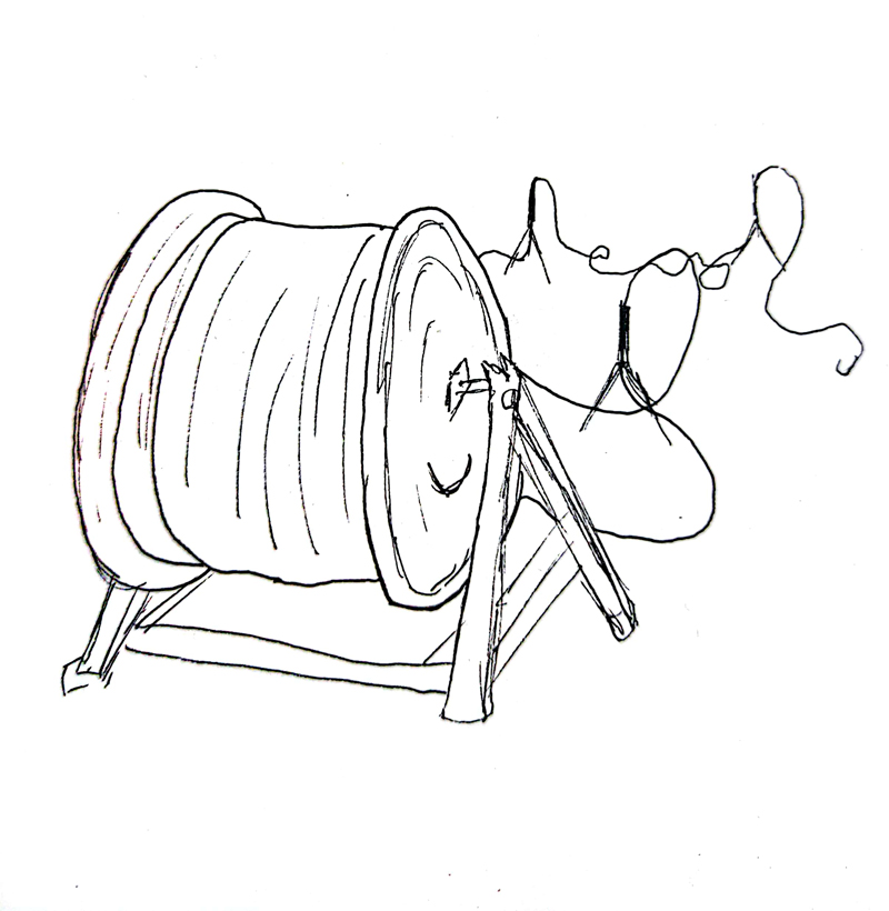 Entre passé et futur Œuvre créant un pont entre les innovations techniques de tout temps. Elle est composée d'une bobine de fil sur le lequel est retranscrit le texte originel de la Bible de Gutenberg croisé avec l'ajout de commentaires youtube d’utilisateurs aléatoires. Cette installation a pour volonté de représenter l'hybridation de deux médiums qui sont marqueurs d'une révolution technique permettant chacune l’accès et le partage de l’information. Ici se mêle le passé avec l’invention de l’imprimerie et la bible de Gutenberg (premier ouvrage produit en masse) et notre présent et futur avec les réseaux sociaux et l'information massive. Cet artefacte rend compte de la nature éphémère des donnés numériques face à la durabilité de l’information physique avec ce fil non dégradable. Œuvre imprimée sur des câbles de fibres optiques en cuivre de 12km.