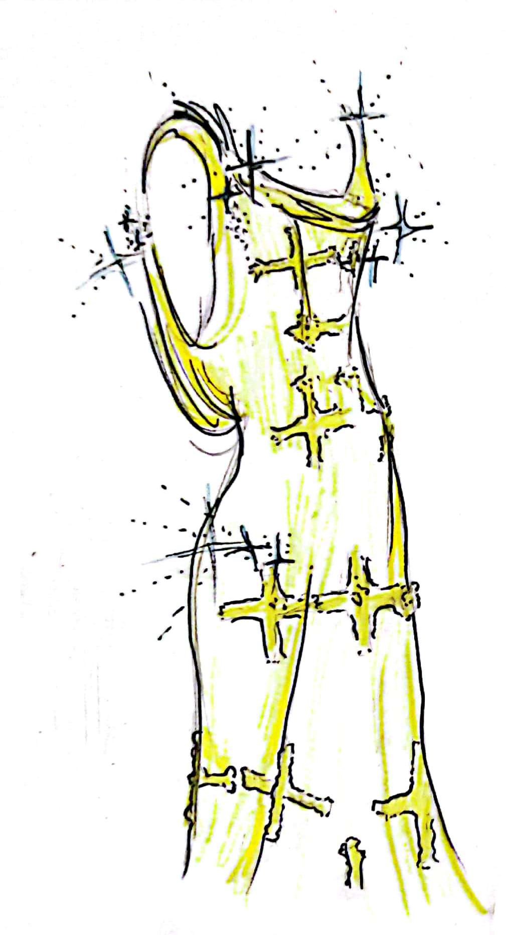 One would simply never dream of seeing Naomi Campbell walk as a madone.Yet, with a collection this dazzaling and golden, Versace doesn’t hesitate to bring a spectacle to those who dare to watch it. At the dawn of the new millennium, fashion is not only seen but experienced. Vogue Paris is talking about a fashion "Big Bang" for the year 1997, as these revolutionary collections are already considered to be emblematic. Tough chainmail fabrics are gliding along the slender and sensual female bodies. The dresses in the collection are adorned with Byzantine crosses, giving them the appearance of falsely pious but truly glamorous garments. Religion has never been this sexy.