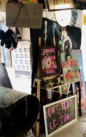 A hidden gallery in the heart of ParisThis place who basic-looking, close to Chatelet station, will host you with open arms in that seems be an contemporary art galery on five floors. Mixing art and communication, 59 Rivoli allows you to talk with every present artists or even observe their way to creation, imagination or conception. Some strangers artists will be able to discover new conceptions and creatifs pathways. It’s a flash of surprise that hit me when we enter on this haussmannien building. I could never have imagine that this place can host as many artists, letting each one identity on every surface available within this edifice. We discover, at each one step, many works and workshops of différents artists taking place in center of this jungle of projects as creative as each others.