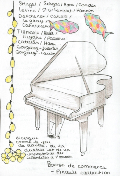 Déambulez dans la rotonde de cette grande collection Nous avons pu découvrir un très beau lieu rénové récemment ainsi que plusieurs expositions. Les expositions offraient un dialogue comme le jeu du double, de la dualité et de la mutabilité des identités. Les artistes nous invitent à tourner dans les différents étages et à nous questionner aussi bien sur les œuvres que sur l'architecture qui nous entoure. L'architecture de Tadao Ando permet d'abriter les 10 000 œuvres de la collection Pinault. Ce lieu m'a particulièrement plu, notamment par sa scénographie très épurée qui permet de mettre en avant les œuvres et leurs idées.