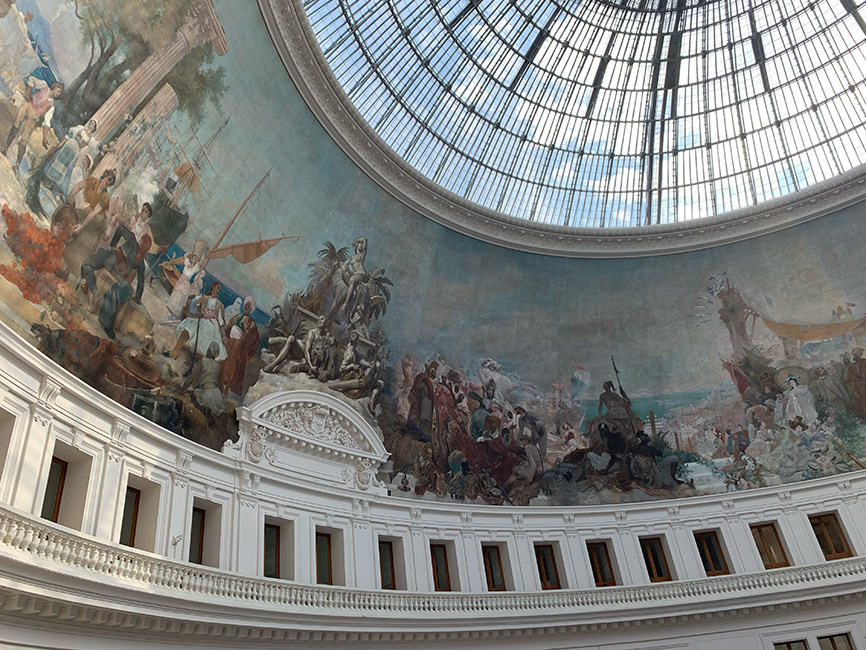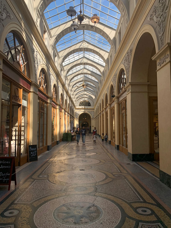 A past animated by the presentHidden by the Bistrot Vivienne, the entrance is discreet. The gallery takes us on a journey into the past. We find ourselves teleported into a corridor tended by the Arts and crafts illuminated by nature, we find ourselves immersed in the sunshine offered by the glass roof. The gallery is enlivened by its low vegetal reliefs as well as by the shops and restaurants that inhabit it, making this quiet and prestigious place more alive. At the back of the entrance, we found a very old bookshop which I think is the oldest in the place, a refuge of literature contrasting with the modernity that has settled in the gallery. This passageway is the result of a fusion between the past and the present, but also of eclecticism and the industrial revolution.