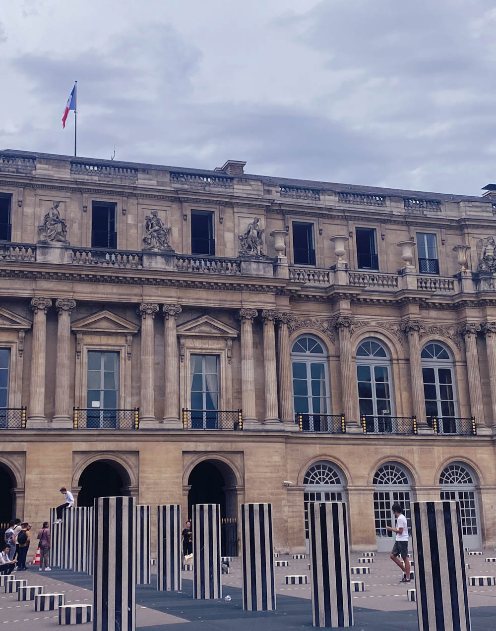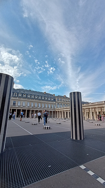 Énigmes monolithiquesInvasion dans l’une des cours du roi ! D’étranges colonnes blanches à rayures noires, larges et froides, ont transpercé le bitume, imposent un nouveau rythme aux palais de Louis XIII et rendent ringardes leurs homologues classiques. Ces nouvelles arrivées ont été invitées par Jack Lang qui siègeait, dans le palais, au ministère de la Culture. Rigoureuses, rangées en lignes couvrant toute la cour et s’arrêtant à des hauteurs différentes, elles dansent, invitent à jouer et s’invitent à poser devant les optiques des smartphones. Avec ces monolithes énigmatiques, l’artiste, Daniel Buren, fait lien entre cultures, passés et formes futures.