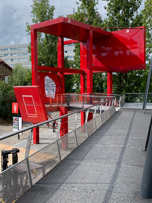 The red course of the Villette, between discovery and research of the Folies. The Folies of the Villette ? I was asking the same question before discovering those big red metal structures, realised by the architect Bernard Tschumi. Everything is in detail on the site, we find signs in connection with the Folies, every visual identity was relied to the red and the use of the same typography; even the guard also proudly wear the color. They are 26 Folies and they are everywhere on the site of the Villette. We never guet tired of these unique infrastructures, some of them have a lot of secrets between the fountains, balconies and geometric shapes had by diferents way to those buildings. I had a lot of fun looking for them and discovered on the site in a new way.