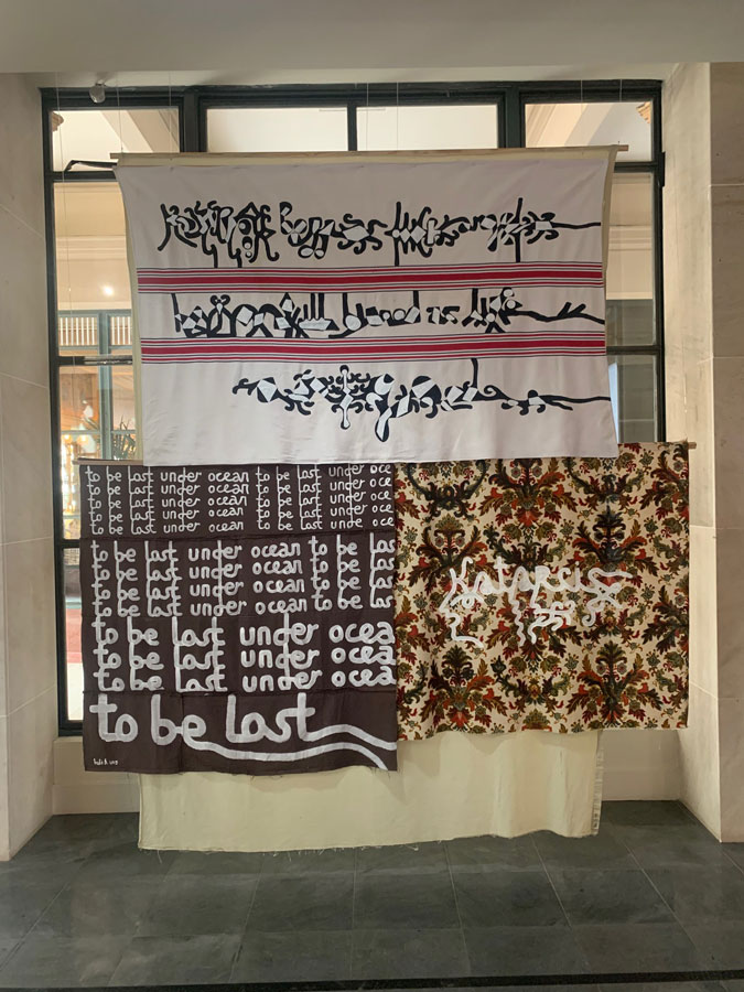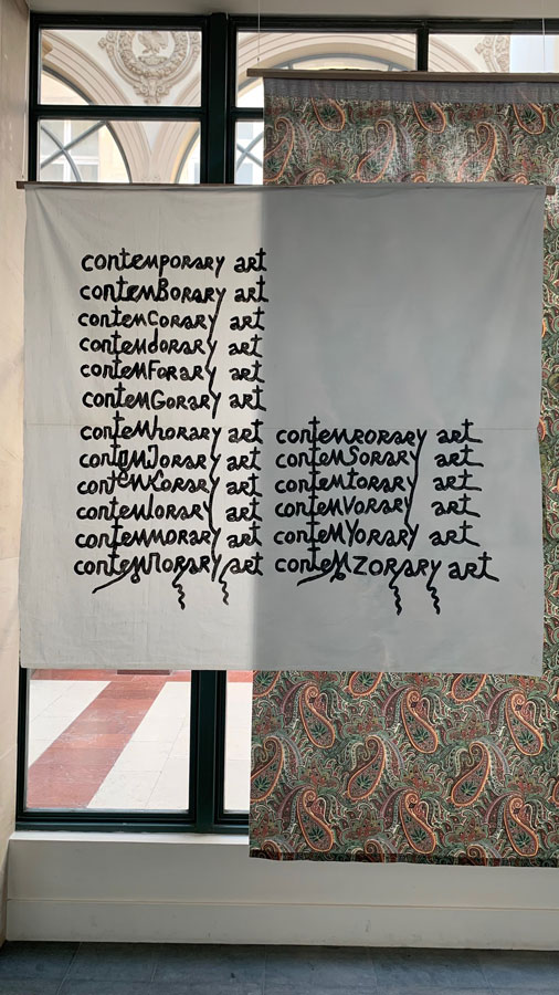 An unexpected findDiscovered by chance, the Galerie Colbert is the extension of the French National Library in the Richelieu district. Hidden by its neighbouring rival, the Galerie Vivienne, it has some surprises, notably the National Institute of Art History which is currently exhibiting the works of Babi Badalov. A graphic exhibition mixing poetry and tradition, it is part of the XXe avant-garde movement. Through an approach similar to propaganda, it transmits a political and philosophical message on simple supports (fabrics, walls). The exhibition brings a breath of fresh air and lightness, it is not overloaded with text, on the contrary, there is only an explanatory text about the artist. Moreover, the silence that reigns in the exhibition invites us to reflect on the works with open arms. We discover her life and the trials she had to overcome.