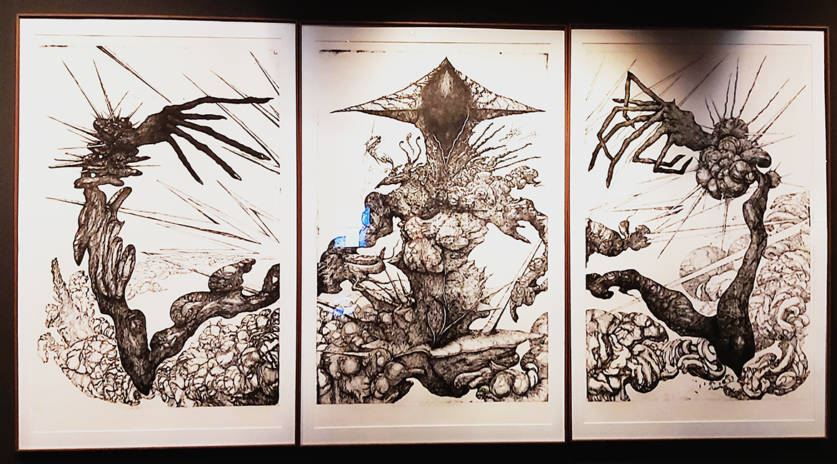 Surprise !Located close to the Sacré-Cœur and surrounded by many of it’s tourists, his benchs, his trees then his little shops. The atmoshphere of the Halle Saint-Pierre is enjoyable and suicite curiosity of each one who wants to venture there. The Halle Saint-Pierre who hosted a market then a school, hosts now a galery, a library, an auditorium and a coffee. When you enter in the Halle, there is a calm ambience with a nice hospitality staff in this old building. We wen there to vistit the exposition « Hey ! Le dessin ». Once past the curtain, « surprise » ! It’s the first word that came to mind. It was very diversified, strange, interesting and sometimes disturbing. Between demons, naked models, manga painting, tags and colored mosaics, the surprise was at its peak. There is, in this galery, a large diversified of artists and works. At each one space, I discovered new universes, new styles and feeling some differents emotions.