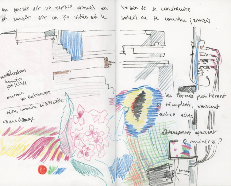 To the discovery of Martian dataOrbis Tertius, is an installation by Benjamin Vedrenne. The latter features a large printer that will recreate the Martian landscapes it receives live by NASA, and redraw them using a pen by drawing lines on an A1 sheet. The construction of the landscapes follows 8 steps.