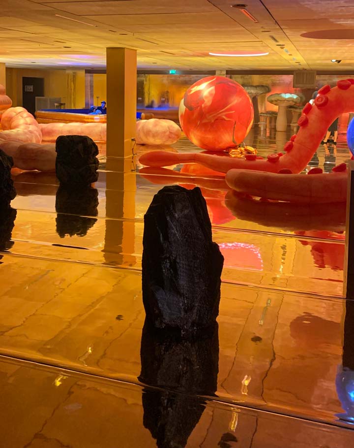 Là ou les sens se perdentDes rayons de vie dans un univers à l’ambiance inanimée, c’est le genre d’atmosphère que l’on peut retrouver dans le centre d’arts numériques et de musique moderne La Gaîté lyrique. Situé en plein cœur de Paris, ce lieu propose de nombreuses expositions, souvent numériques comme l’exposition AURAe de Sabrina Ratté ou un peu plus détachées de ce domaine comme Shiny Gold de Nelly Ben Hayoun. D’un côté, l’une vous transporte dans un monde presque irréel rappelant les backrooms en vous plongeant dans un environnement sombre où les couleurs font preuve d’une transcendance rare. Ses fortes lumières à l’allure parfois dysfonctionnelles vous donneront rapidement l’impression d’être bloqué dans un trip difficile à oublier, sans compter les effets sonores qui vous resteront en tête mais qui rendent l’expérience encore meilleure. De l’autre côté, Nelly Ben Hayoun vous propose une expérience plus proche de l’homme en vous emmenant dans un univers plus organique, où l’on peut rencontrer des intestins XXL, des champignons de la même taille ou encore une piscine à boules (dans laquelle on pouvait aller). L’aspect interactif entre le visiteur et les installations peut en séduire plus d’un, tout comme l’atmosphère très dorée du lieu.