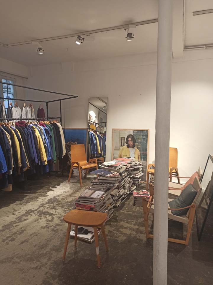 Fashion in letters, images and materialsWith their impressive collection of fashion books and magazines, the OFR library leaves us feeling so tiny compared to all this knowledge packed in this small shop. With the impression of being immersed in a fashion magazine, we find the atmosphere of a fashion runway, between fascination and pretentiousness. While sneaking between the piles of books, we enter a small corridor that leads to an art gallery ! Alexander and his sister Marie decided to collaborate with artists to let them exhibit their work in the back of their library. A must-see for vintage enthusiasts, you can find books, magazines, vintage newspapers… For the anniversary of the librairy, you can even buy clothes from the OFR collection !