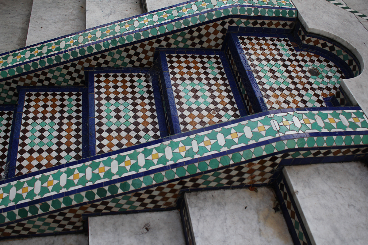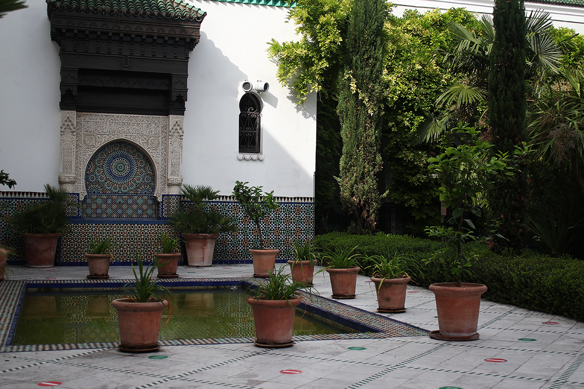 Pic and pic and mosaicRight next to the Jardin des Plantes, in Paris 5th, you can find the oldest mosque in France. Calming and poised, it is composed of multiple open rooms and gardens. The walls and the fountains are covered with mosaic, fully colored and with shapes that plays an important role into the mosque's identity.