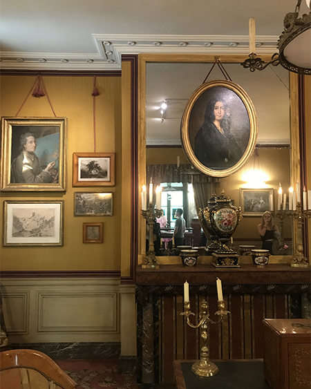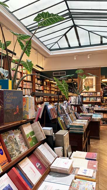 The Galignani bookstore, a warm and bewitching piece of England When you walk through the doors of this bookstore, you can't hold back your wonder. A simply magical and elegant cozy English style. Here, three book departments are offered; Anglo-Americans, French, and a department applied to the Fine Arts. To the right and left, wooden shelves are overflowing with books, each one more captivating than the other. Then we are quickly caught up in all these covers with a thousand and one colors, retro patterns and neat typography. Ladders go up the shelves, green plants top certain pieces of furniture, the windows filter the light above our heads. This whole universe envelops us, begs us to stay. We walk through the shelves, we let our hands wander from book to book. Then, we see a staircase forming a kind of floor and rolling up on a shelf several meters high. I am not a fervent reader, but this whole library seems to call us to get lost in this universe of words and colors. Everything here seems magical and out of time.