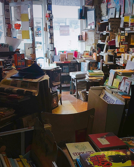 An atypical librairy for comics books lovers! Philippe is an independant comic book lover who immerses us in his universe when we enter his little boutique located in the XXe arrondissement. The books are chosen with passion by the owner and are scattered on the tables and shelves found in flea markets, which is an invitation to open every book you see. There is a wide choice from the floor to the ceiling, and you will find books and comics from independent and atypical publishing houses or self-published authors who knows Philippe's small shop style. Pleased to help you or answer your questions, this passionate proposes graphic novels for all ages, with new products every week, and a selection of posters. You will want to come back to find a hidden gem and to talk with Philippe!