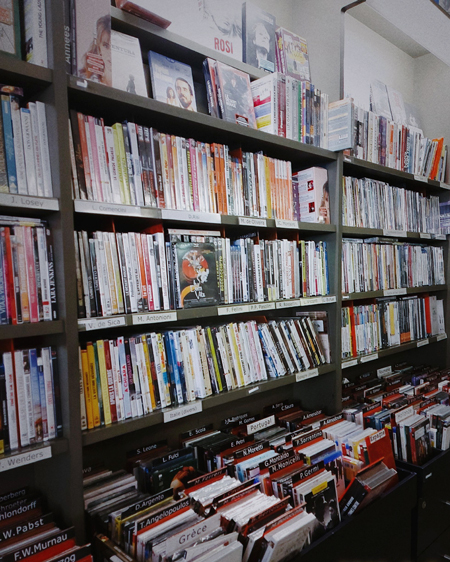 La ruée vers l'or des cinéphiles! A la fois café, boutique et espace de rencontre, Potemkine est l'endroit parfait pour passer son après-midi. Cette boutique indépendante sélectionne avec soin des DVD/Blu-Ray parmi tous les genres (classiques, expérimentaux, films d'animations, ou encore documentaires). Le classement par ordre alphabétique vous aidera à trouvez tout ce que vous chercher, à moins que vous préfèreriez vous perdre en faisant défiler les titres sous vos doigts. Ils possèdent également un large choix de musiques de films sous forme de vinyles et de CDs, d'affiches de films, sans oublier une sélection de livres sur le cinéma (vous y trouverez le magasine KIBLIND!). A l'heure de la dématérialisation, ils privilégient les belles éditions qui travaillent aussi bien le contenu que le contenant en soutenant les éditeurs. Pour aller plus loin, ils ont créé la société Potemkine Films, un éditeur vidéo qui agrémente d'analyses et d'explications des films coups de coeurs. Venez y travailler avec une boisson de leur catalogue et repartez avec votre programme de la soirée.