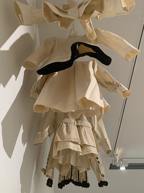 Trip in a path of smells.Ascension is an olfactory installation through which Julie C. Fortier makes us travel, soliciting our sense of smell. It guides us through contrasting landscapes that we visualize in an imaginary way by evoking our memories to transport us. The installation is made with perfume testers embalmed each morning. The journey here is mental, and evolves according to the sky which is in front of you. Firstly, a black sky of smoke, leather, plastic and tar. Then, a grey wind of dust. A third sky, lighter, reminds a living morning, pink, wet and earthy. The last is white, and evokes a thick mist.